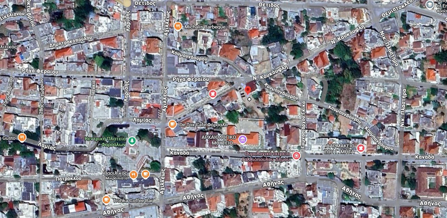 Το οικόπεδο βρίσκεται στην Κωμόπολη Φάρσαλα στον Νομό Λαρίσης, επί της Οδού Κουκουφλή, 120μ. από την Κεντρική Πλατεία Φαρσάλων και 160μ. από Οδό Καναδά.